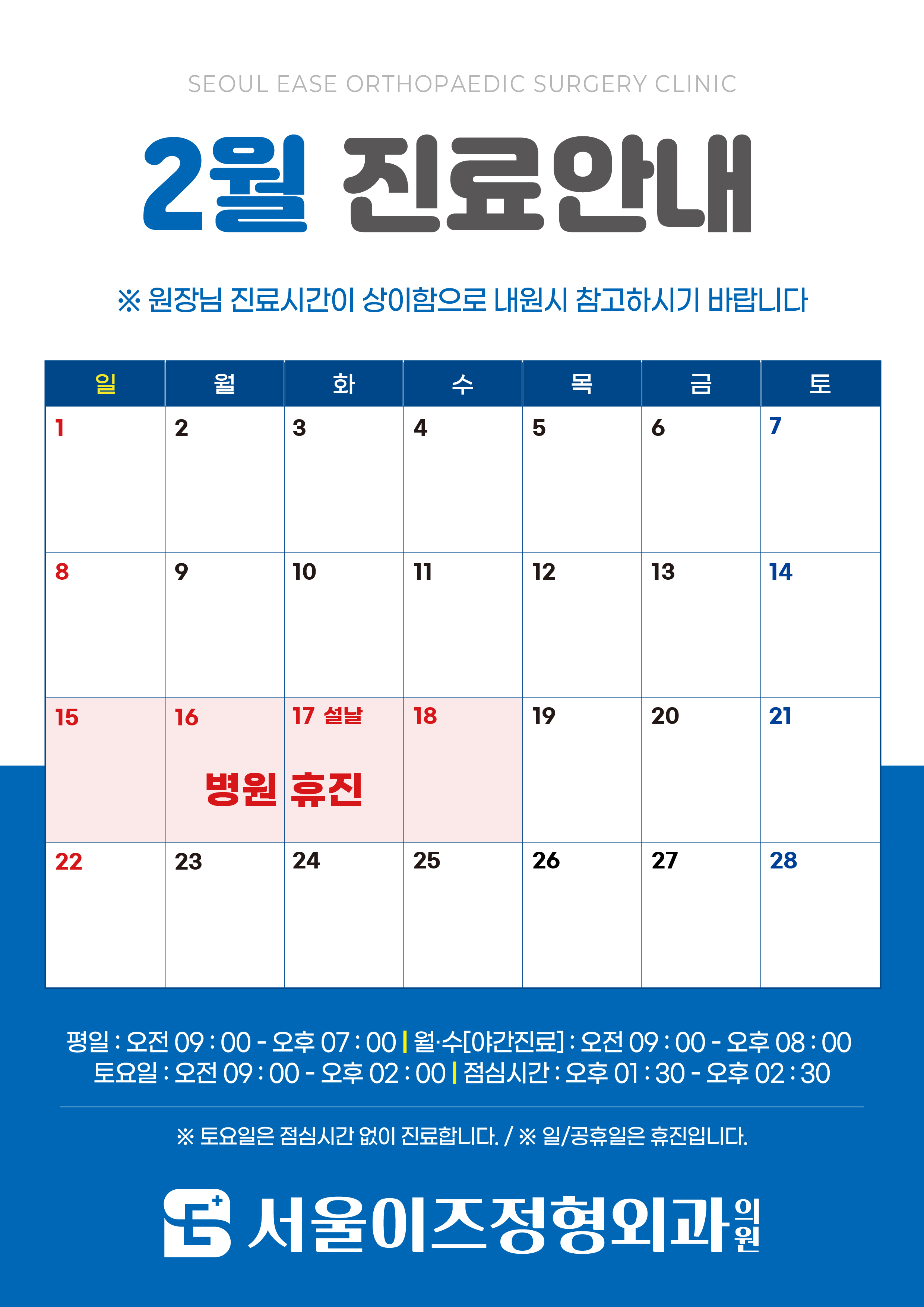 ※ 일/공휴일은 휴진입니다.